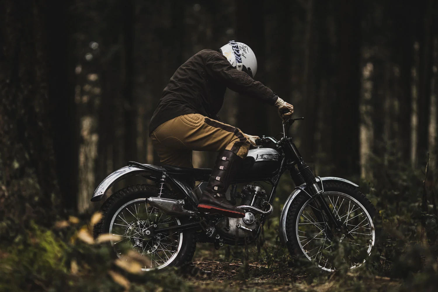 It’s not easy to find a great vintage look pant that is also comfortable and practical for riding your motorbike. Inspired by the vintage racing leather pants of the 70’s, the DESERT PANTis the pant for your everyday adventures, both urban and offroad.