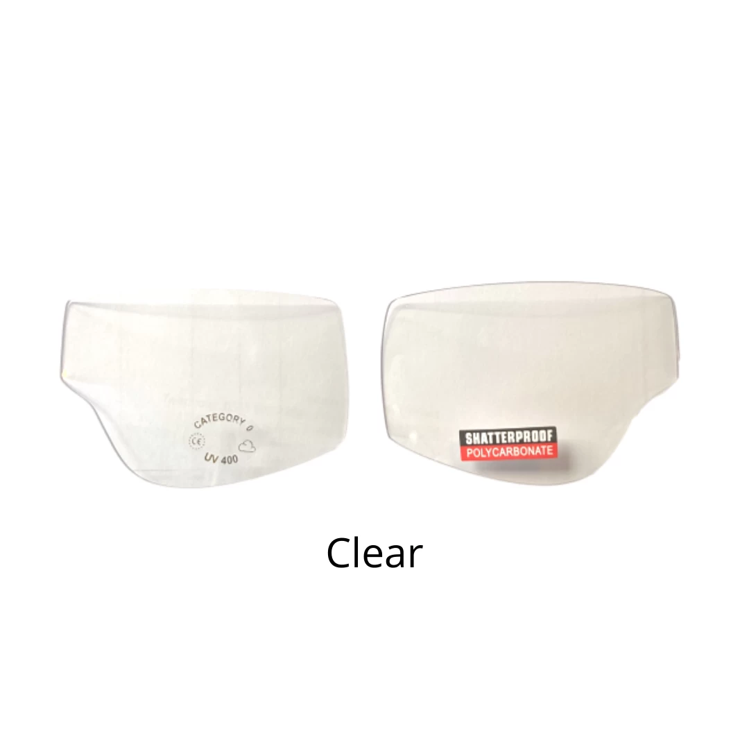 The standard fitted lens are slightly mirror and tinted. Clear lens are an extra option listed below. **NEW** Photochromatic lenses are also available as an extra. A photochromic lens is an optical lens that darkens on exposure to light of sufficiently high frequency, most commonly ultraviolet (UV).