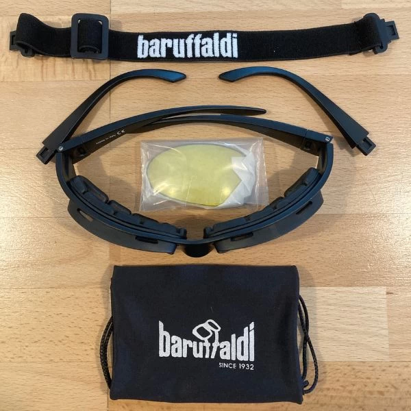 The eyepiece frame holding the lenses are in a special aerated foam and hypoallergenic called Hytrell, ideal for two wheel leisure and sports in which protection for the eyes is needed. Its fastening band is adjustable and is included in the Kit, it is interchangeable with curved or straight arm pieces.