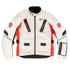Introducing the Astrail Jacket in Lucky Explorer Red/White, a versatile and durable piece of equipment designed for dual sport motorcycle riders who demand stylish and high-quality gear for both on and off-road adventures.