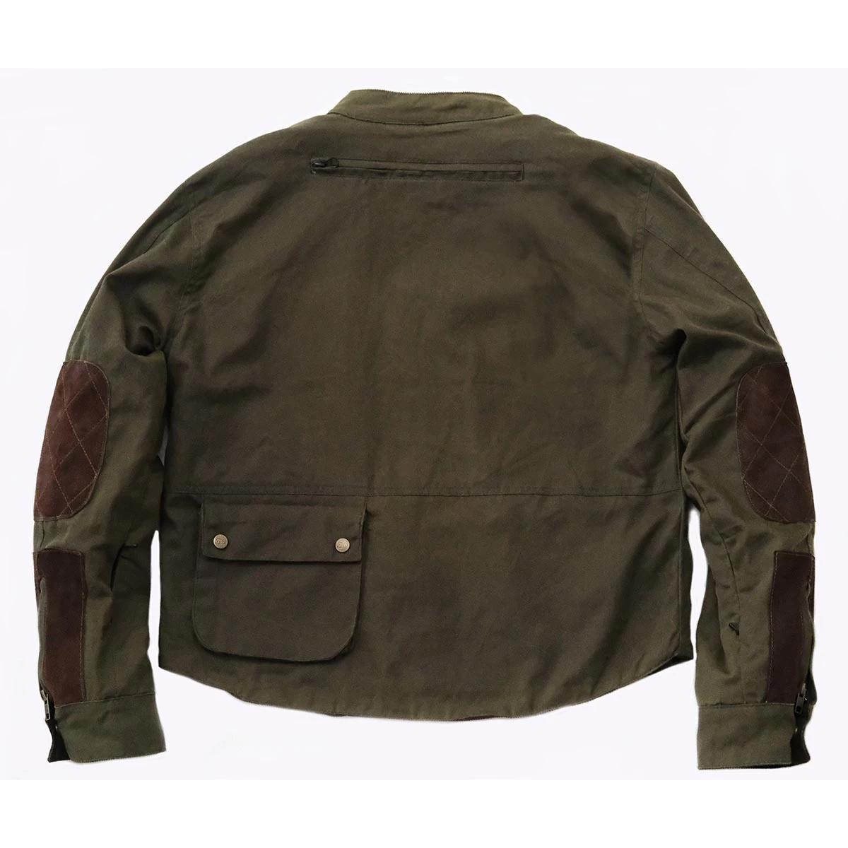 Made using tough military canvas with a water and dirt repellent treatment, and detailed with supple suede in high-use areas. Improved pattern with longer arm length for a more comfortable fit, and a waterproof lining for riding in rainy conditions.