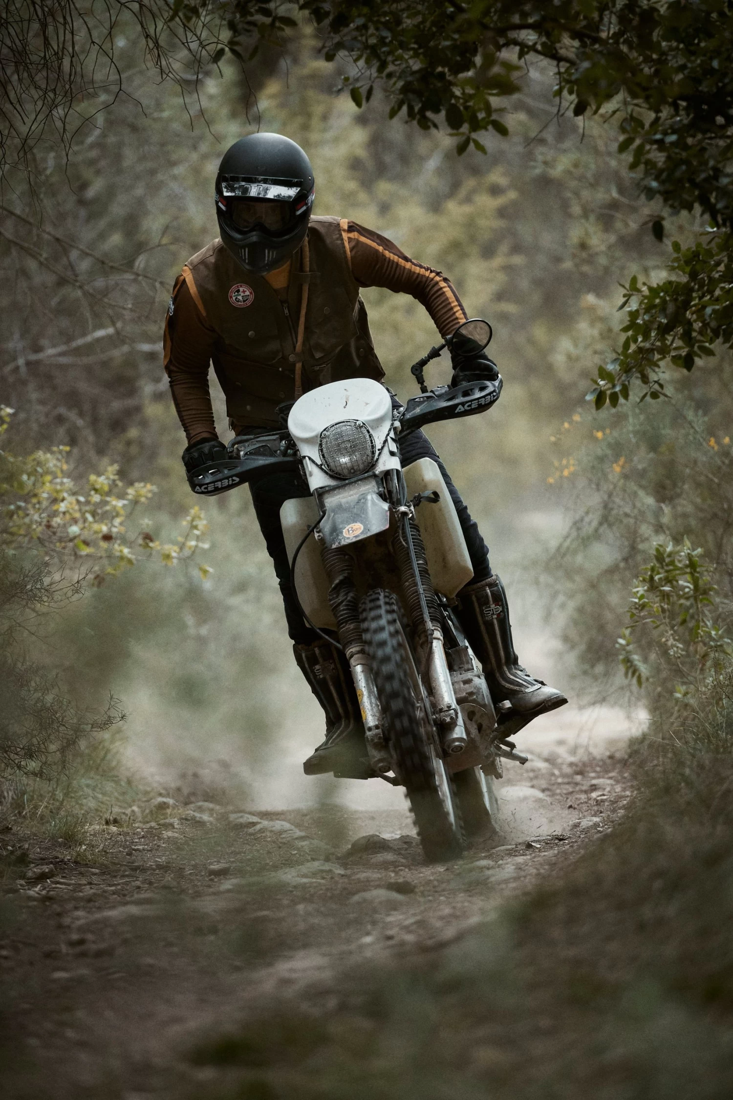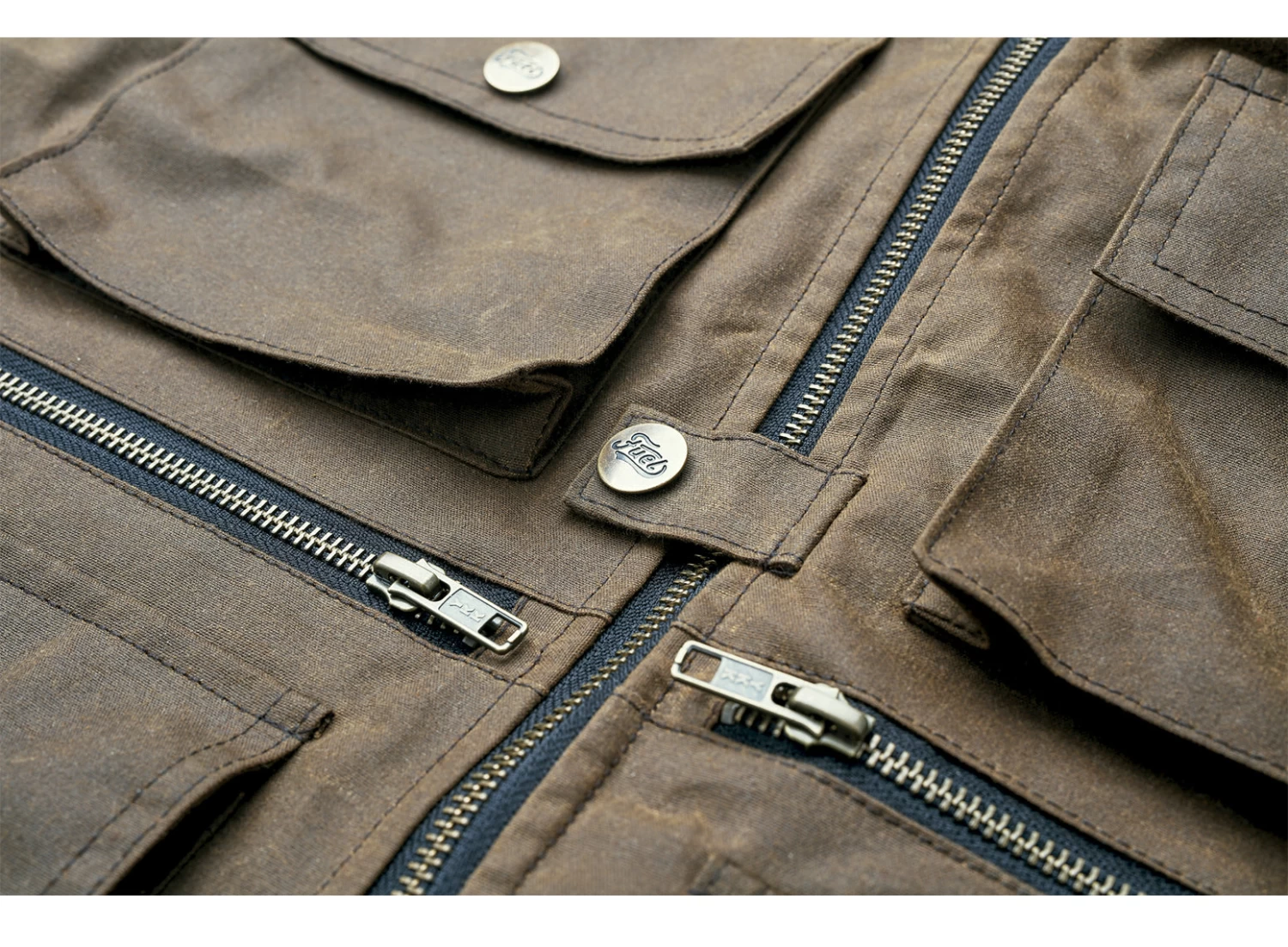 A water-resistant oilskin cotton vest with multiple front pockets and a compartment with a 3ltr hydration pack in the back. It comes in a numbered edition, which means each vest is unique, and with time its appearance will only improve.
