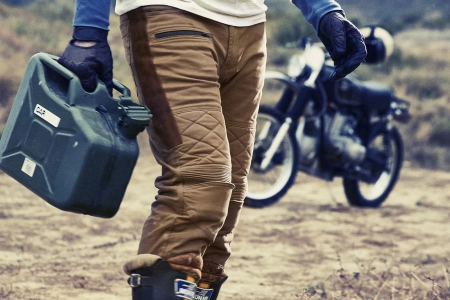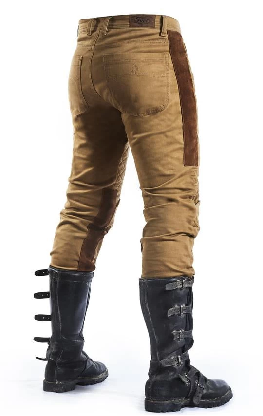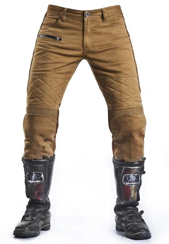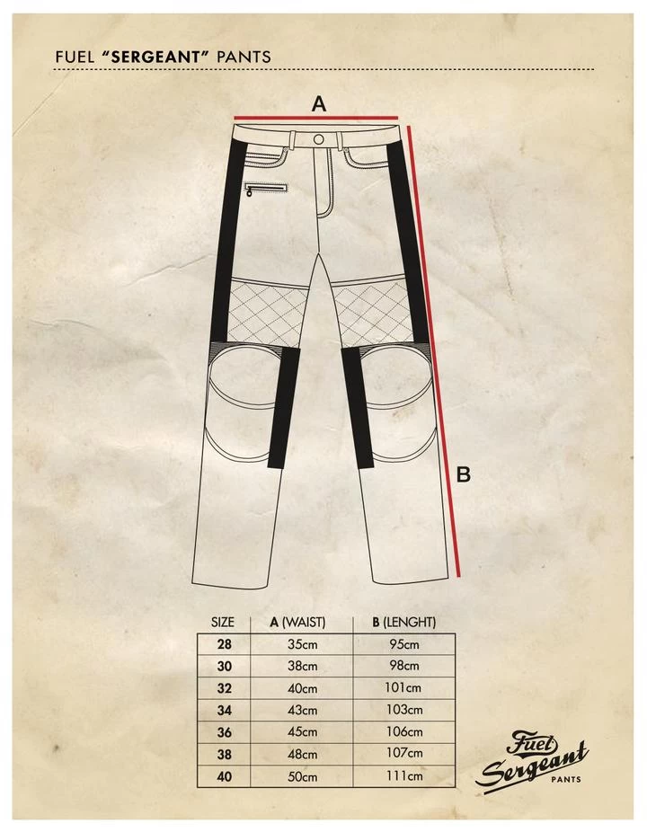 Its all about style and functionality and we are immensely proud to introduce the Sergeant Sahara Pants, a highly functional riding trouser that not only looks like it can take a beating, it performs like it too. The 11.5oz stretch denim outer layer is backed up by an aramid fibre abrasion-resistant layer in the seat and knee areas and they come equipped with CE Level 2 knee and hip armour. The knee armour sits snugly in the outside pockets and can easily be removed when stepping off the bike. There’s stretch panels above the knees for extra comfort while riding. Quilting and suede panels give the Sergeant a style of its own. Awesome looking trousers that (strangely) match just about any bike!.. Incredibly comfortable too!
