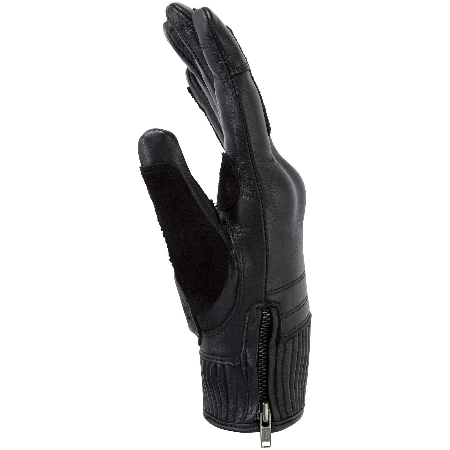 - Stretch leather cuff with YKK zip closure.