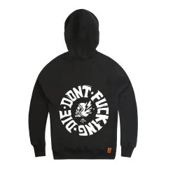 A traditional hoodie sweatshirt combined with Pando Moto’s usual branded graphics in a matt blackout print. Featuring 10oz Eco cotton with a ribbed collar, cuffs and hem.Â