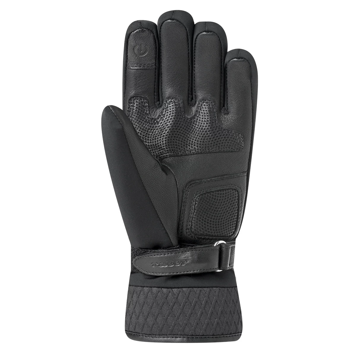 The SARA glove in black is a warm and stylish glove for ladies. Featuring PRIMALOFT® insulation, it guarantees and excellent level of warmth as well as exceptional flexibility. It is made from soft nylon softshell for a silky feel and features a leather palm with a short cuff. The synthetic sheepskin cuff can be turned up if you prefer.