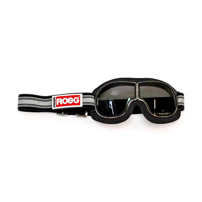 Designed to go with your Roeg Jettson, Jett or favourite open face helmet. The ROEG® Jettson Grey Stripes “old school” moto goggle fuses vintage moto design with modern styling and technology resulting in a timeless look with next level performance. The goggle meet the CE EN1938:2010 regulations suitable for motorcycle use. The Chrome goggle frame is finished with 100% Premium Cowhide and fitted with a grey anti scratch lens and a 35mm woven striped black/grey strap.Â