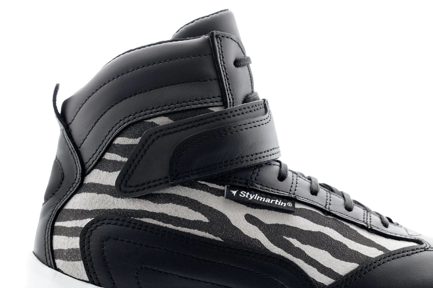 The Audax shoe, is a new concept of style for motorcyclists. The Jungle is made of suede in the side inserts with a zebra pattern, which makes this shoe innovative in the sports touring market for ladies.