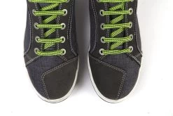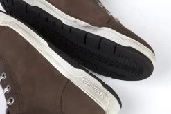 Basketball and college wear-inspired sneakers, minimalist and uncompromising lines, shapes and colours. Characterised by specific stylistic choices, such as full-grain leather, and with key safety features such as PU internal ankle inserts. A boot that perfectly combines metropolitan charm and the spirit of the motorcycling community.