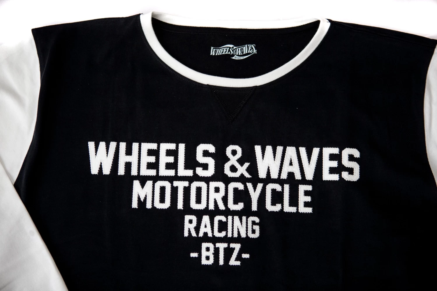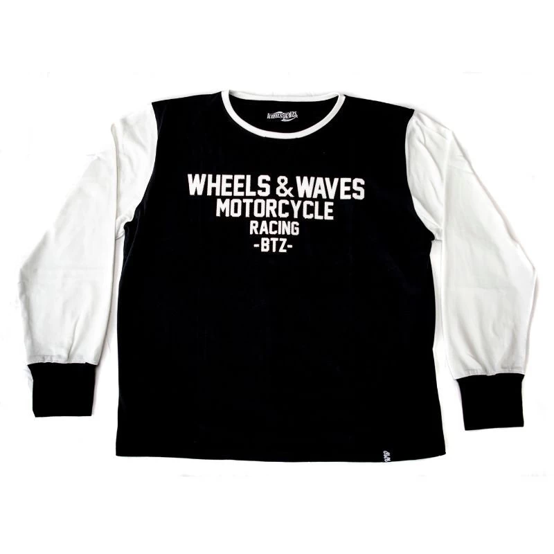 - Black body & cuffs – White sleeves & neck trim.