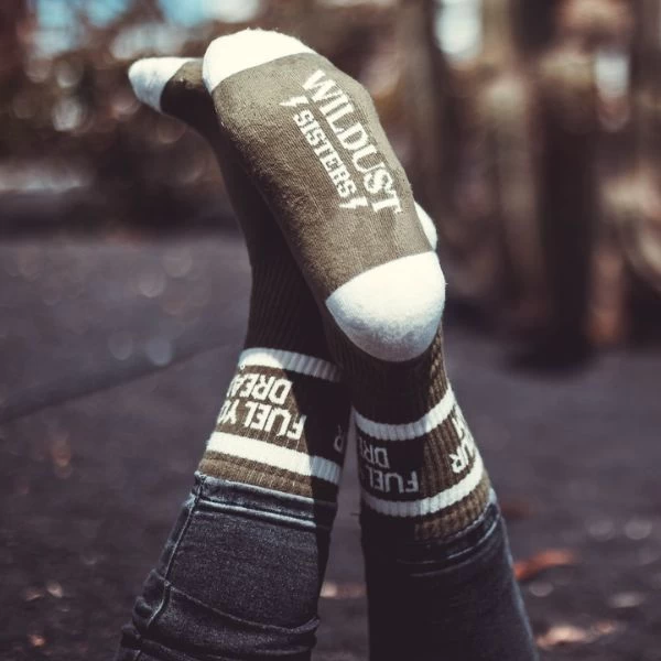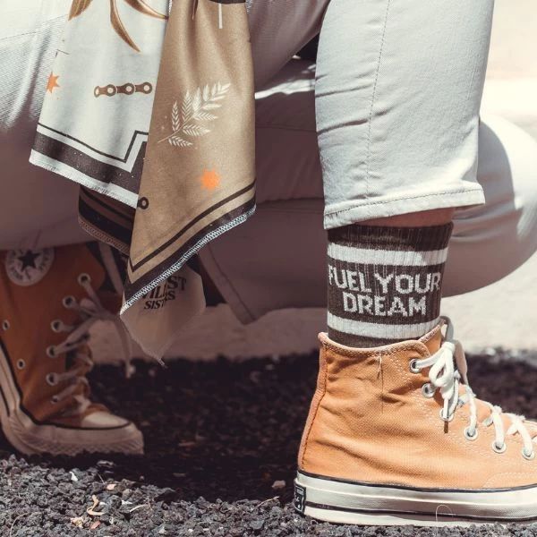 That’s style! We kept the spirit a little sassy, ​​with a message drawn on the sock, but this time on the side, between 2 white stripes. FUEL YOUR DREAM, or NO RISK NO MAGIC so as not to forget to live your dreams, and to “ride” them! RIDE BIKES HAVE FUN for free and untamed spirits, then ROAD TRIP BABE for wild spirits, and road trippers!