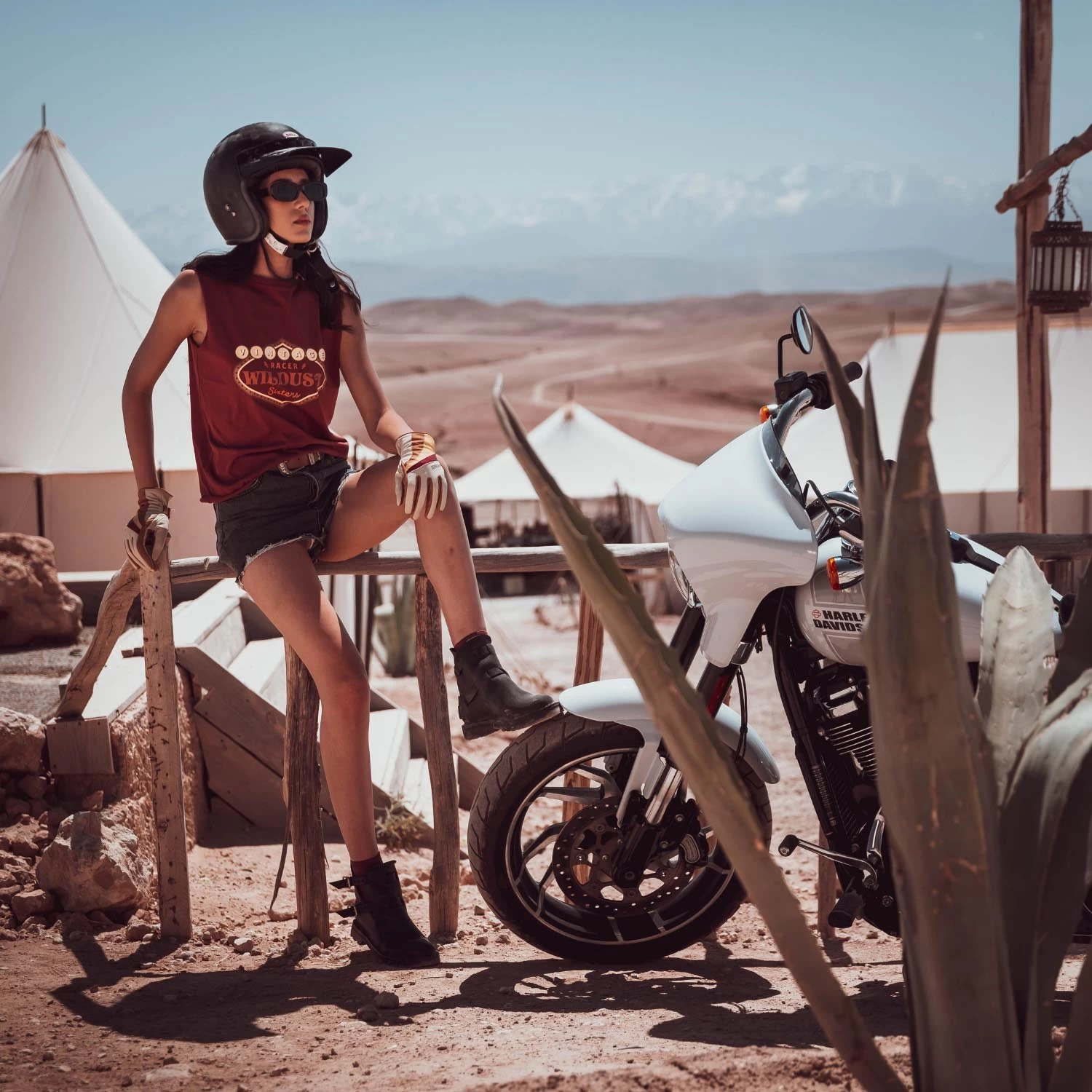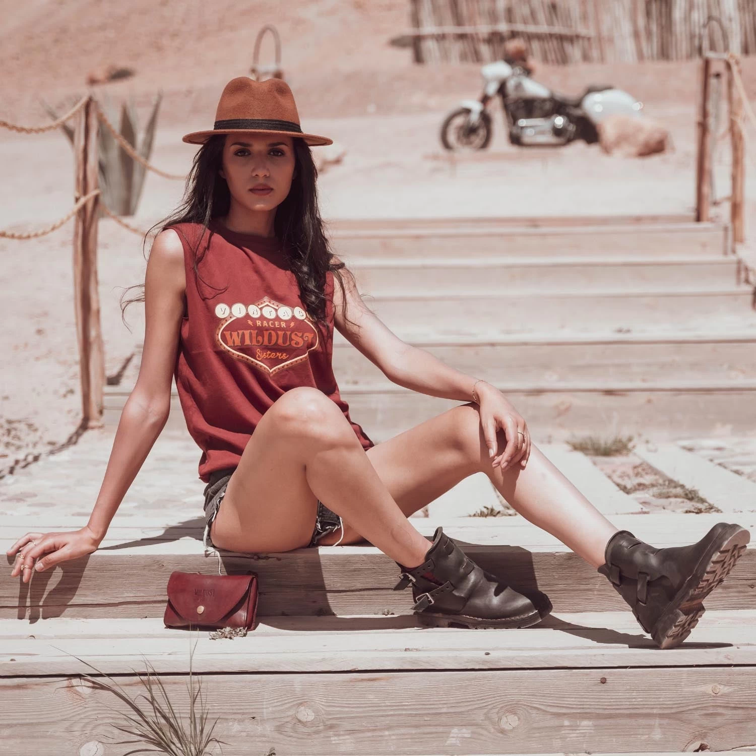 Now let us tell you the story of this beautiful tank top… Each new creation is a journey, so you’ll have to close your eyes, imagine yourself on one of those mythical highways crossing Texas, Arizona and California, to come across this bright and vintage sign “WELCOME TO LAS VEGAS”! If the shape of the design tells you anything, it’s because you have the same refs as us! The big illuminated sign that welcomes you at the entrance of this crazy and recreational oasis that is Vegas, is the one we wanted to redesign, a symbol of the 70’s, a period when the city was literally exploding! Symbol of a whole generation of Americans in love with freedom and motorized travels, reckless adventurers having travelled through the neighbouring deserts, and landing in this crazy and contrasting bubble that is the incredible Vegas. Â Â