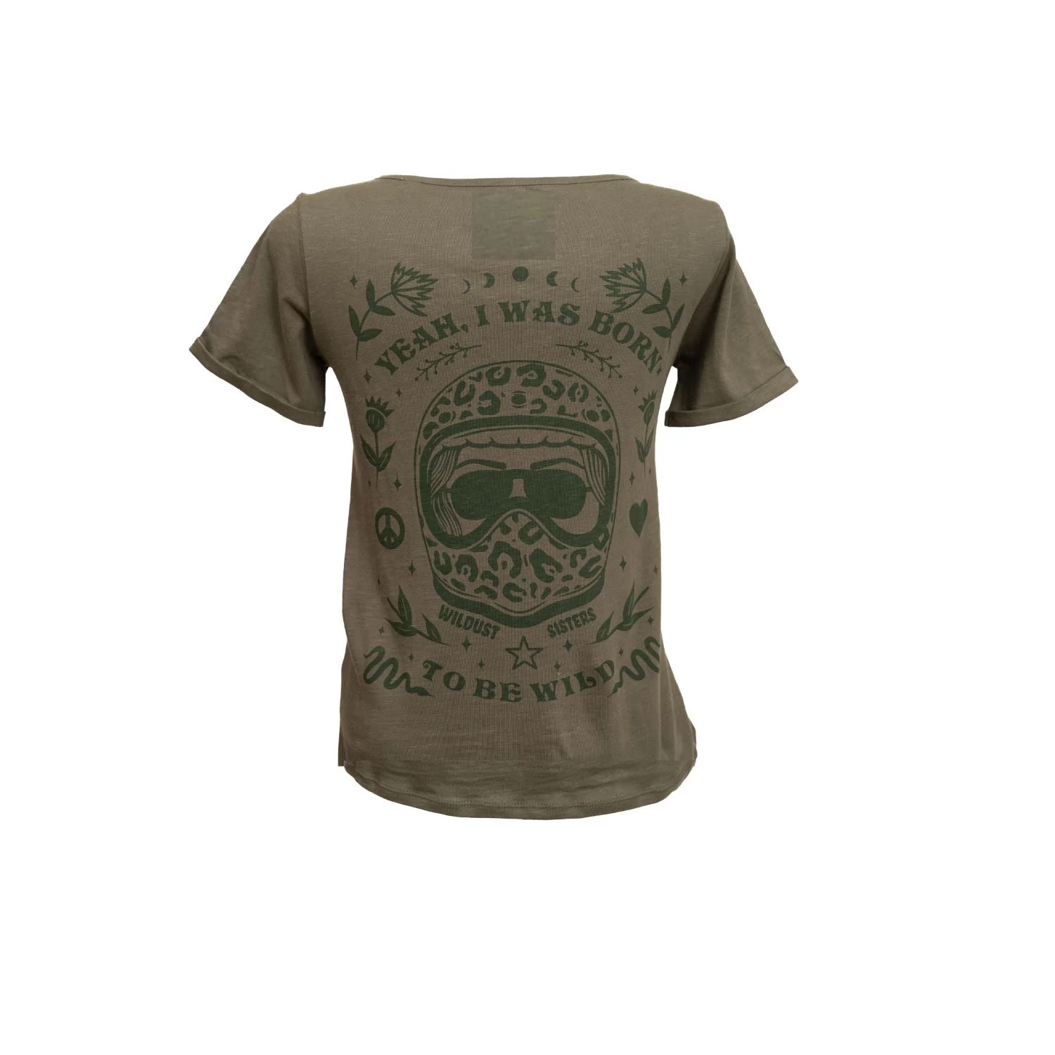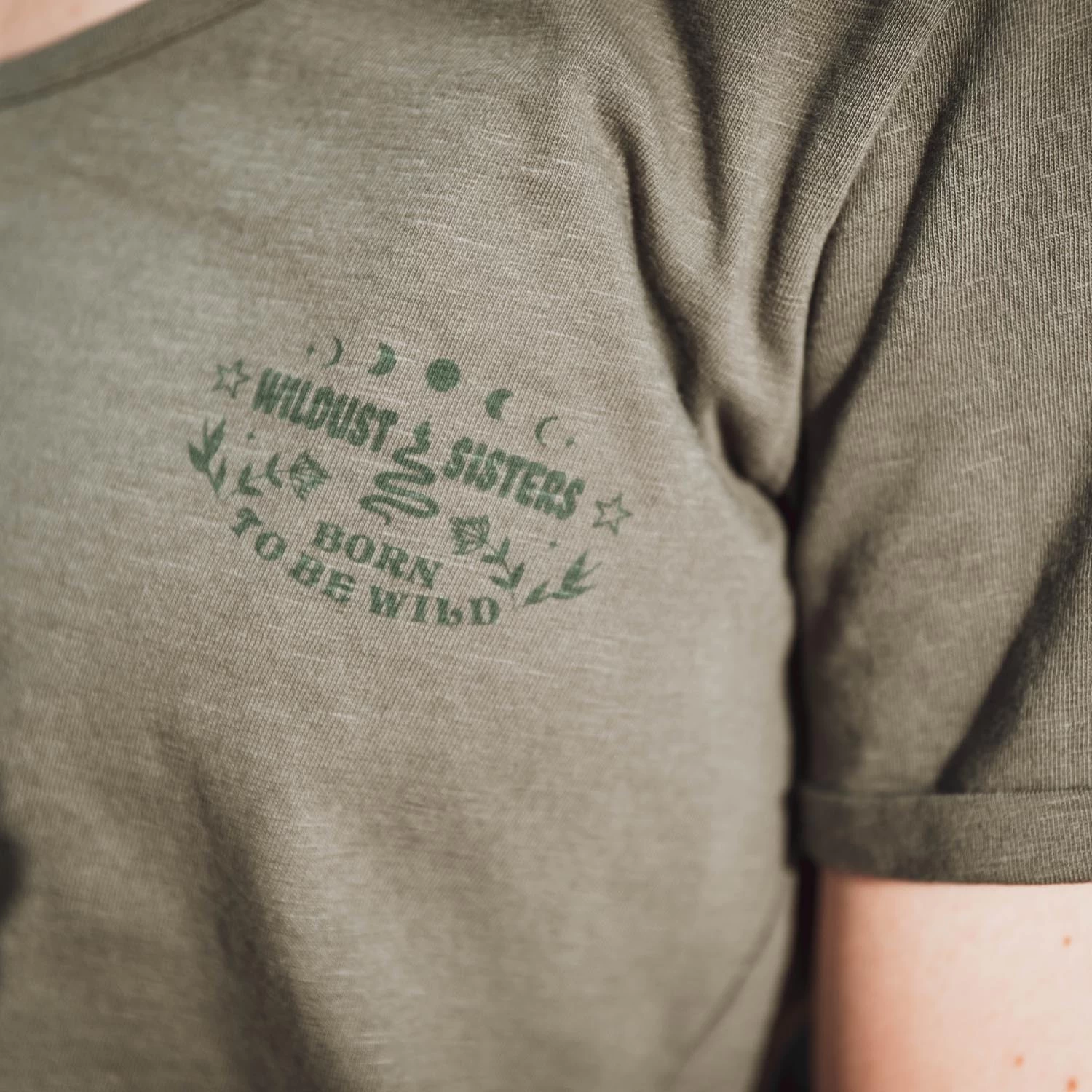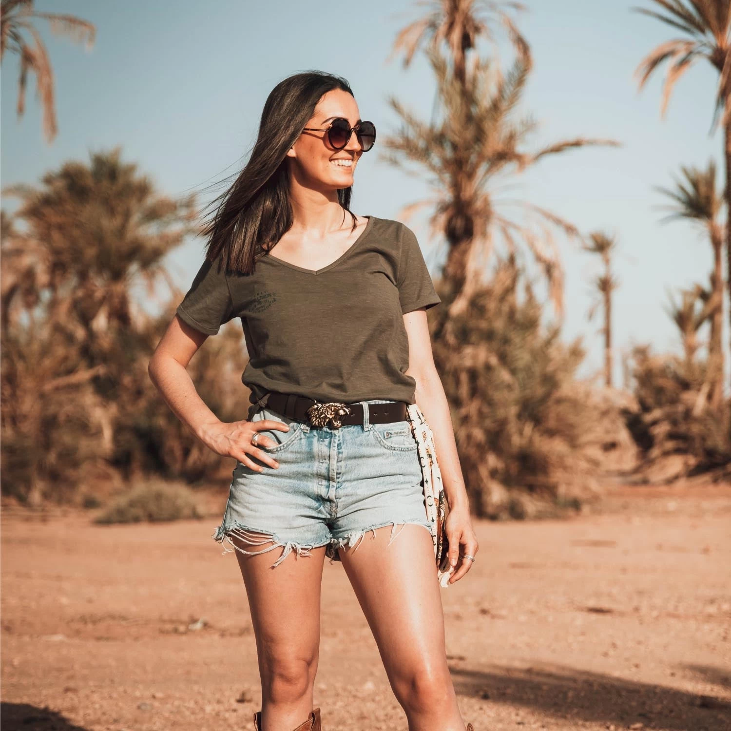 A full khaki t-shirt? Yes, we dared! First of all, you should know that the choice of this daring piece is not a coincidence! Indeed girls, the name “khaki” comes from the Persian adjective “khâki” which means “earthy”, “dusty”!  Can you see the connection? So yes, without surprises, we “wild sisters” are particularly attached to it.Â